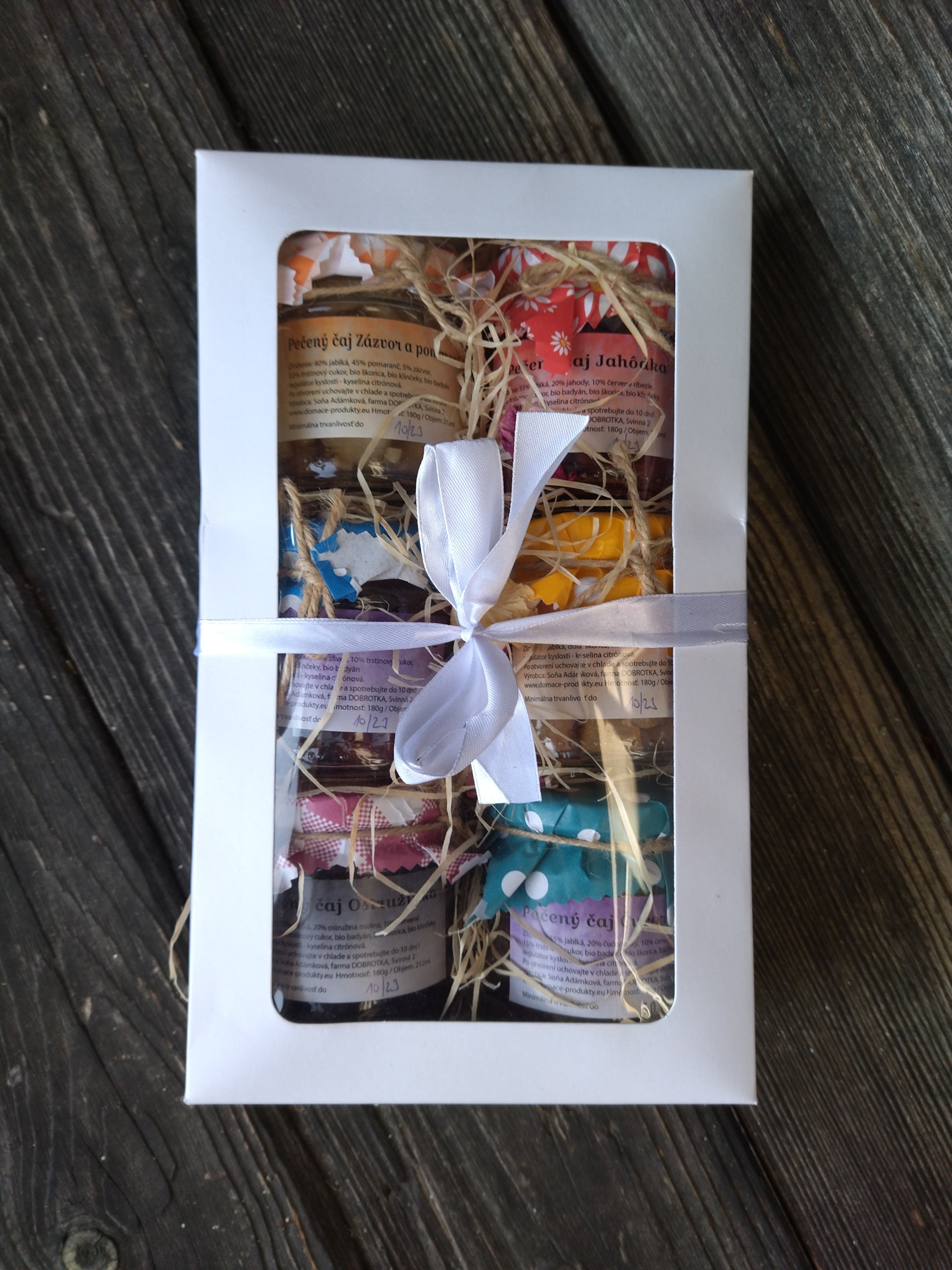 obsahuje 6 roznych druhov pecenych cajov podla aktualnej ponuky a vyberu v darcekovom baleni