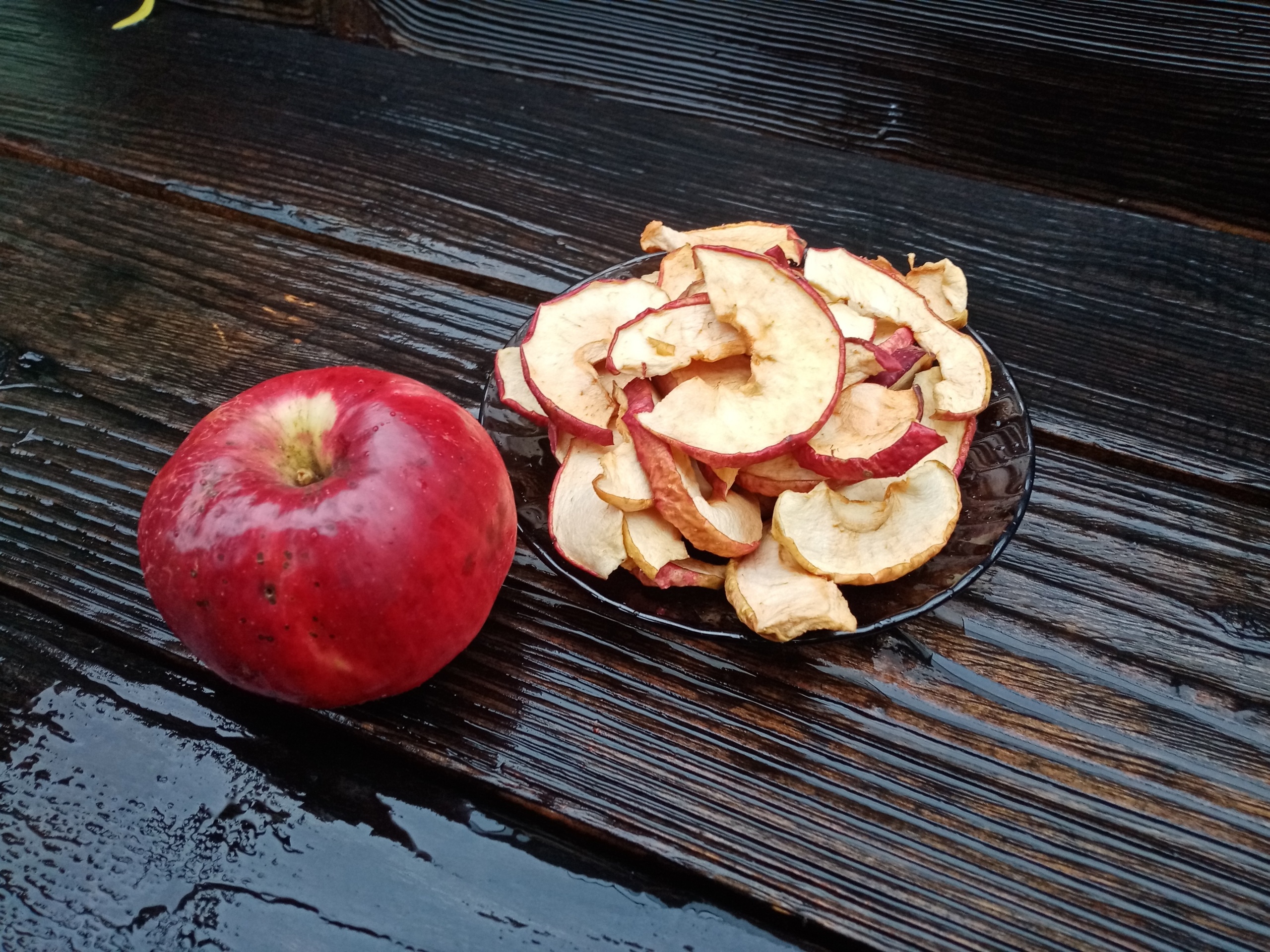 JablkaВ su nakrajane na tenke platky , susene v domacej susickeВ na ovocie.