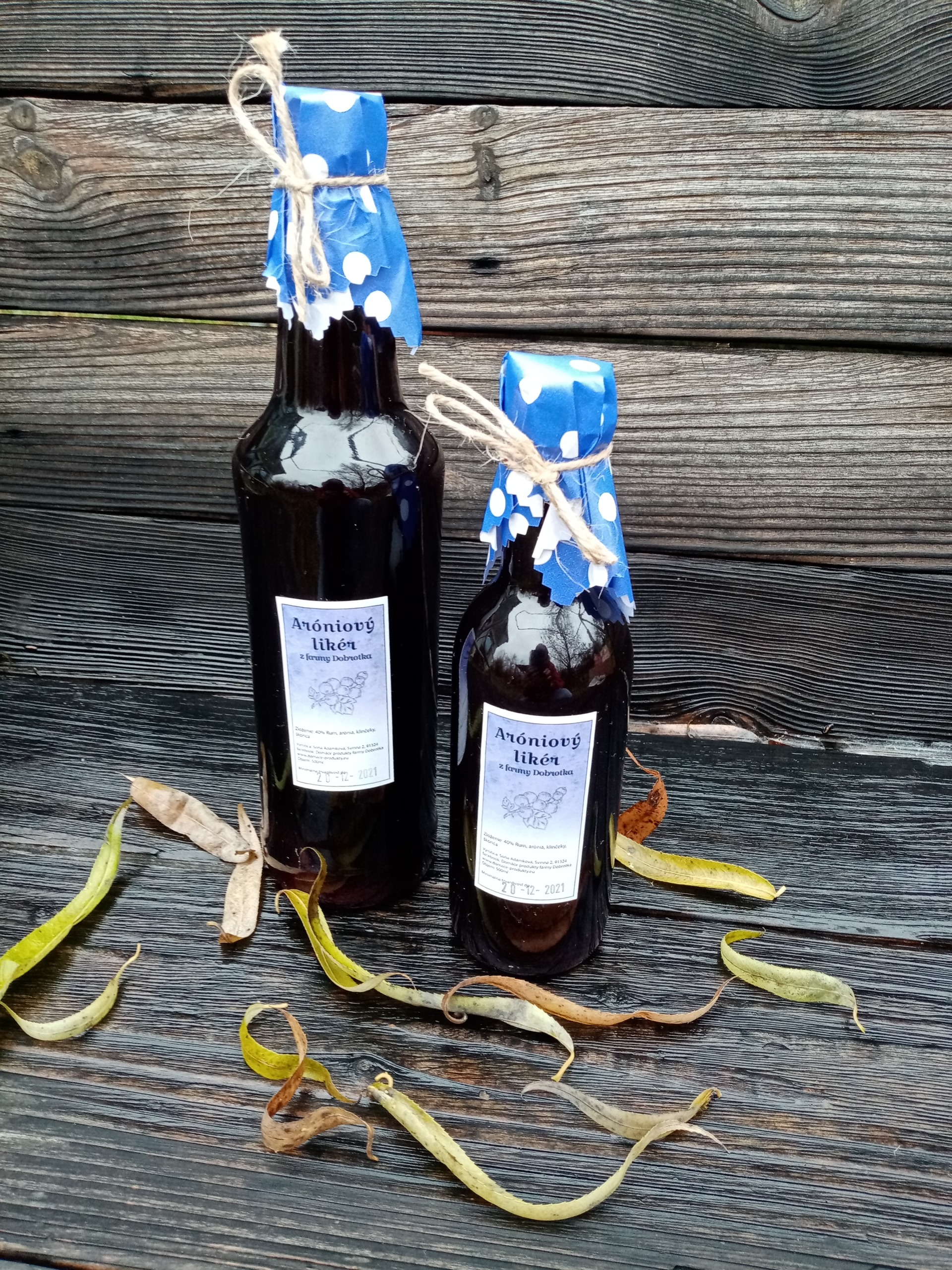domaci liker vyrobeny podla tradicnej receptury z vodky, plodov aronie, trstinoveho cukru, klincekov, skorice a citronovej kory.