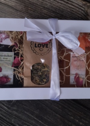Ide o darcekovu sadu 3 poharikov s objemom 212ml v darcekovej krabicke s 3mi okienkami, ktora pripomina vceli ul . Obsah darcekovej sady si sami nakombinujete z aktualnej ponuky produktov, podla chuti obdarovaneho. Pozadovane produkty uvedte, prosim, do poznamky v objednavke.