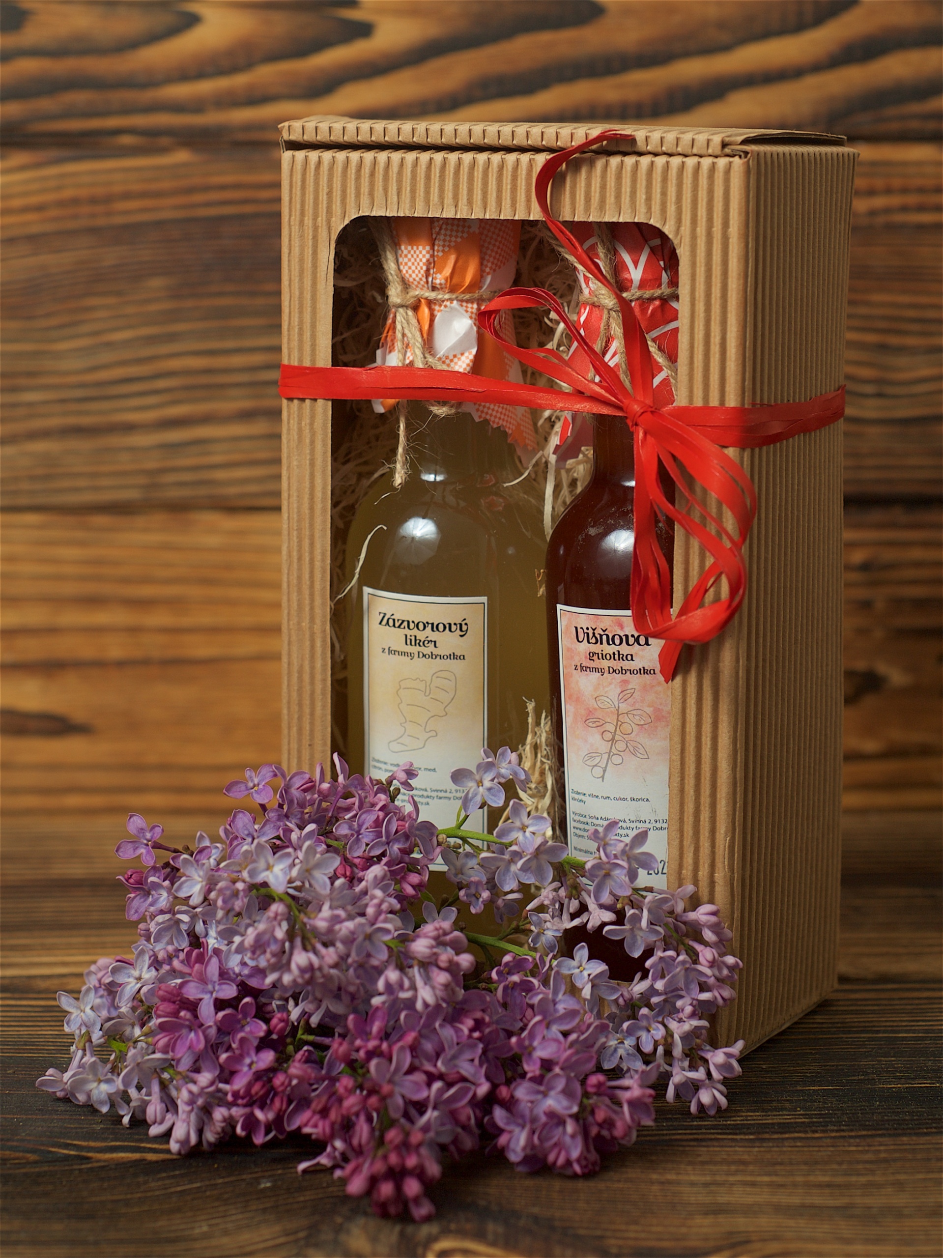 В Ide o darcekovu sadu 2 druhov domacich likerov vo flastickach s objemom 300ml, ktore si mozete zvolit z aktualnej ponuky . Druhy pozadovanych likerov uvedte, prosim, do poznamky k objednavke.