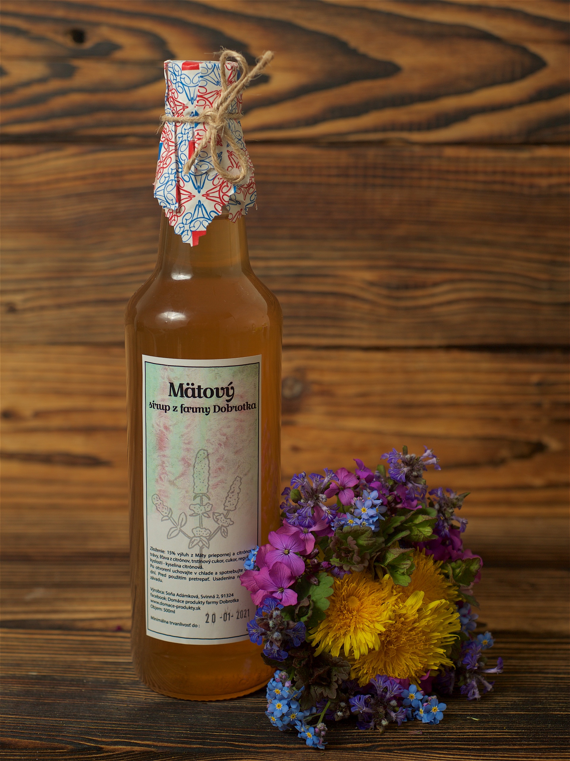 Zlozenie 15 % vyluh z Maty priepornej , citronovej travy, stava z citronov, trstinovy cukor, cukor, regulator kyslosti – kyselina citronova .